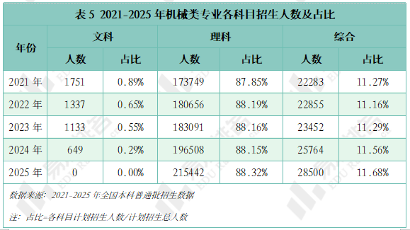 机械类专业招生打算人数逐年添加。